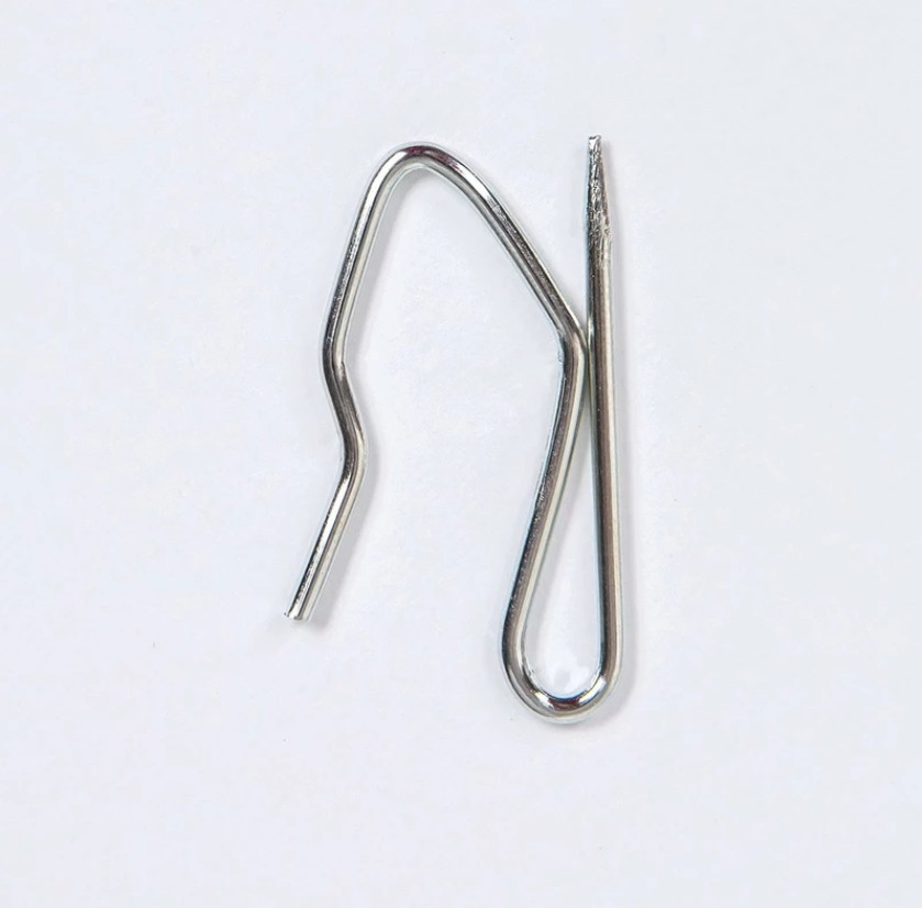 Соединительный элемент, предназначенный для надежного удержания штор на карнизе. Конструкция игольчатого крючка предусматривает возможность фиксации на полотне шторы обеспечивая скрытое и надежное соединение. Этот метод особенно актуален при изготовлении штор с закрытием шторной ленты с изнаночной стороны, когда требуется максимально аккуратный и эстетичный вид. Он позволяет избежать видимых элементов крепления на лицевой стороне шторы. Крючок выполнен из металла, размер крючка 35мм.