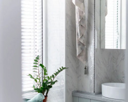 Эта квартира , как хороший дорожный саквояж. Вместила в себя все , и даже больше. На 67 м кв просторная кухня -гостиная, 2 спальни и даже 2 санузла, один из которых ещё и постирочная. Эта же ванная комната не для хозяйственных дела, это территория удовольствия. Логично , что на территории приятных эмоций текстиль обязателен, тем более если есть полноценное окно. Белые деревянные жалюзи и ламбрекен из роскошной ткани с милыми кисточками . Такая жизнь, я думаю, всем по душе Работа текстильного декоратора Галины Гусевой текстильная мастерская ЗАНАВЕСКА г.Оренбург