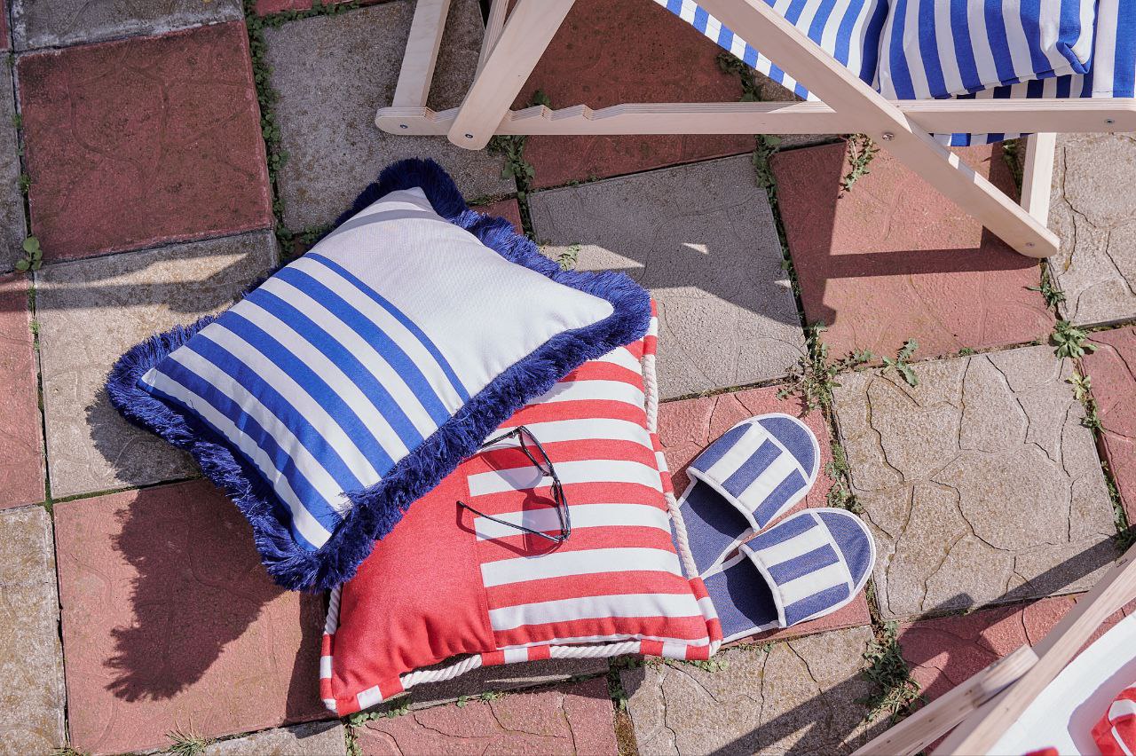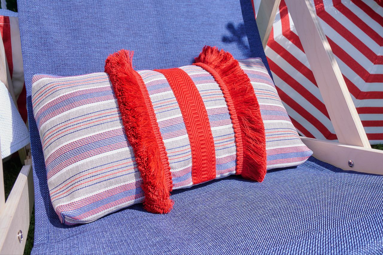 Загородный дом. Несколько зон отдыха под открытым небом. 1.Лежаки у бассейна. Ткани DUCK, басоны коллекции STREET отвечают не только за красоту, но и за функционал. В боковины матрасов вшита очень пластичная жаккардовая лента, чтоб избежать деформации края при долгой эксплуатации. В торцы полуваликов-подголовников вшит плетеный шнур, который не только акцентирует взгляд на форме, но и фиксирует ее, являясь своего рода армирующим элементом. Это так же продлит срок службы изделия, помогая оставаться ему надолго в неизменной форме. Насыщенный цвет не выгорит на солнце и не полиняет от контакта с водой, потому что модифицированный акрил в составе гарантирует его сохранность! 2. Зона в цветнике. Сидушки сшиты в аналогичных тканях и басонах, с тем же функционалом. 3.Качели. Хочется обратить внимание на подушки. Их много и они обильно украшены декором из басонов. Но бахрома и шнуры настолько мягкие и тактильные, что это совершенно не вызывает ни какого дискомфорта, даже если послеобеденный сон в тени винограда уговорит вас провести достаточно долгое время в их объятьях. 4. Ну, и шезлонги... Они наитивно перемещаются по всей территории, составляя компанию отдыхающим. Ткани - акрилы, олефины и даки. Но за декор, да и функционал тоже, отвечают опять тримминги коллекции Street. Швы натяжных сидений-основ на изнаночной стороне усилены репсом. Подголовники украшены и сформированы шнурами. Подушки не только радуют глаз, но и комфортно поддерживают поясницу, абсолютно не вызывая неприятных ощущений от нашитой достаточно объемной бахромы-щетки. Она пушиста и мягка. Работа дизайнера Макатровой Катерины дизайн-студия "Лукреция"