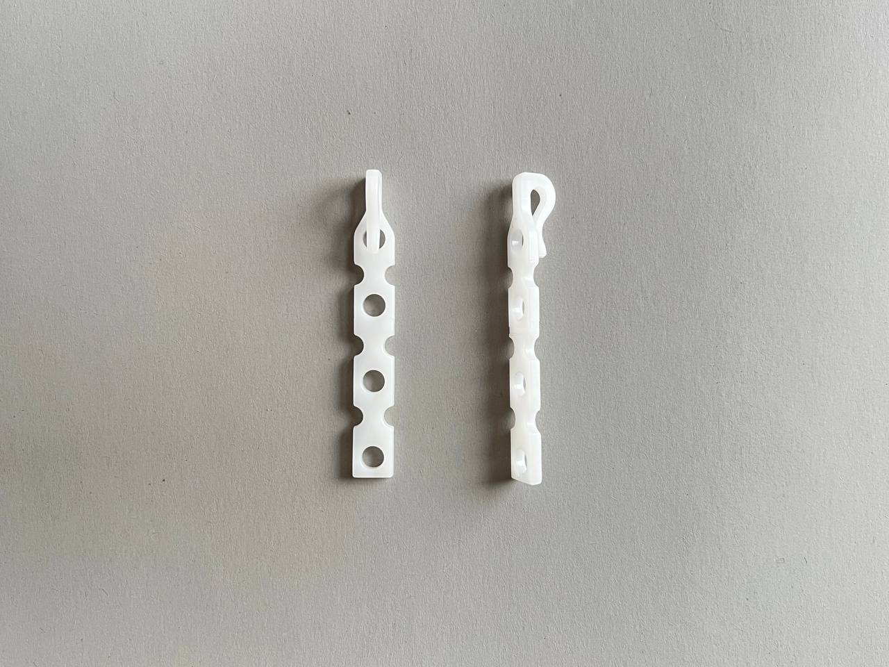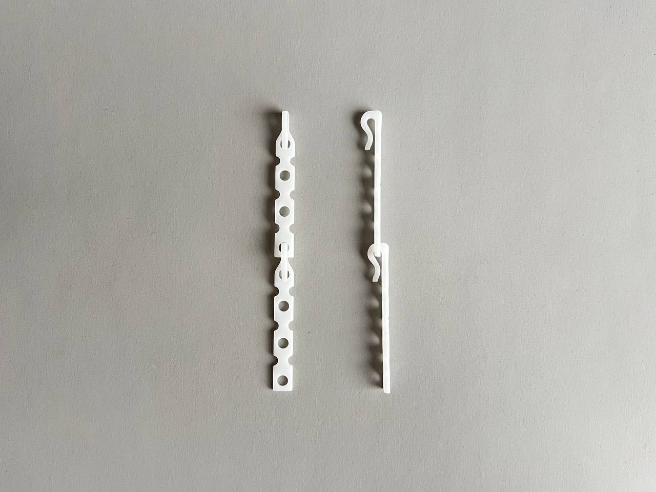 🪝 Крючок имеет 4 отверстия и базовую длину 6 см (при необходимости её можно увеличить до 10 см, используя второй крючок, или наоборот — укоротить по направляющей риске).