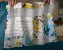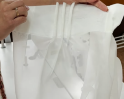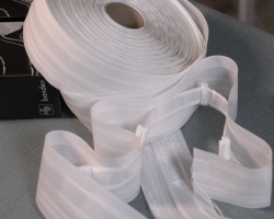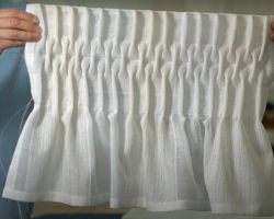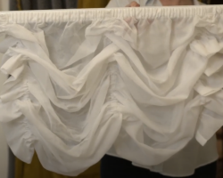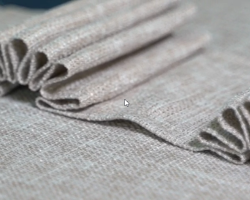 Мы отнесли образцы бахромы из рафии на деревянной основе (арт. 2906, 2907) в химчистку, предварительно хорошенько испачкав жирным алым карандашом для губ. Также решили поэкспериментировать с бахромой изо льна (2940) и тоже добавили её в заказ.